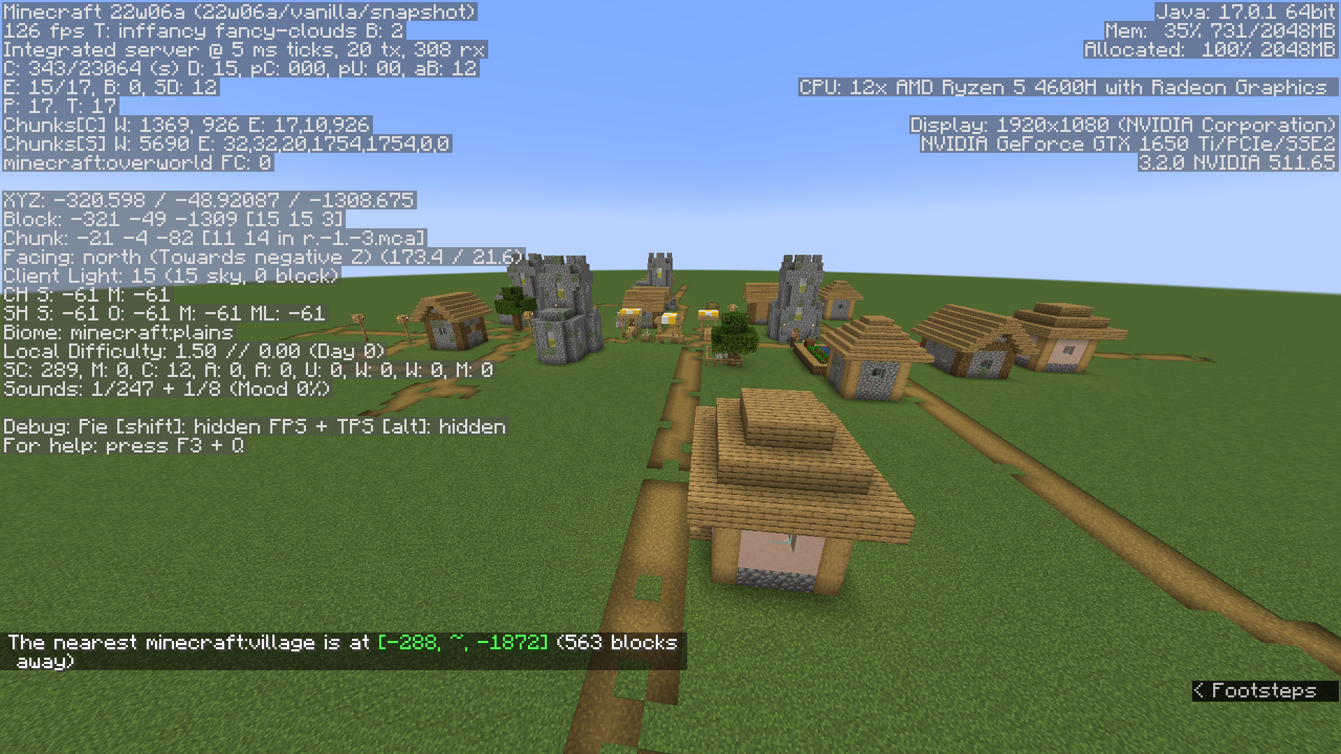 /locate command in does not locate the nearest village in the latest snapshot. I tested using the same seed in 22w05a and it works fine in that snapshot.