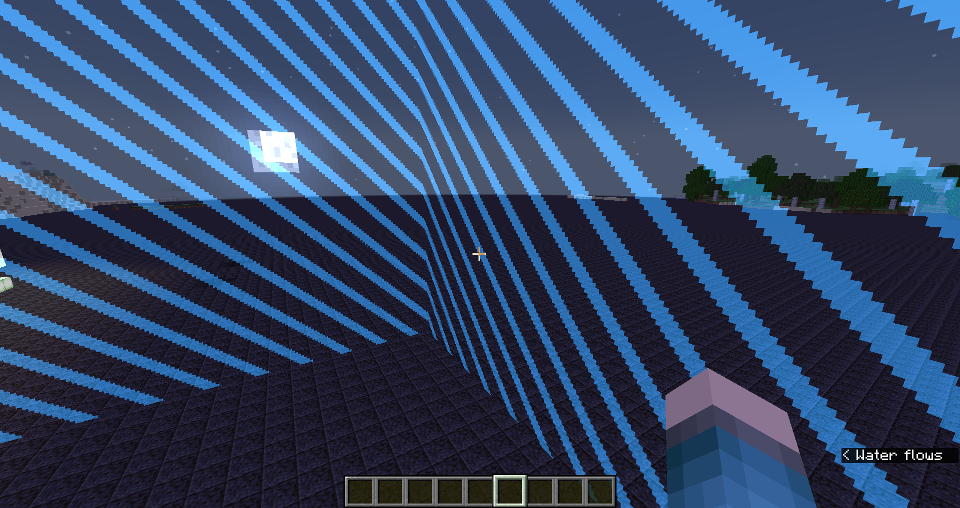 Description: The world border texture jumps back and forth by 8 pixels depending on the player's height in the world. This bug is hidden normally because the vanilla world border texture (a 16px*16px image) is actually a 2x2 tiling of the same 8px*8px texture, which hides the glitched effect. Using a resource pack with a custom forcefield.png that takes advantage of the entire 16px*16px quickly reveals the true nature of the bug.