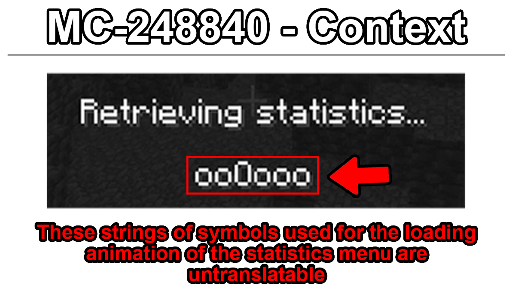 The strings of symbols "oooooo", "Oooooo", "oOoooo", "ooOooo", "oooOoo", "ooooOo", and "oooooO", used for the loading animation of the statistics menu are untranslatable and are missing translation keys.