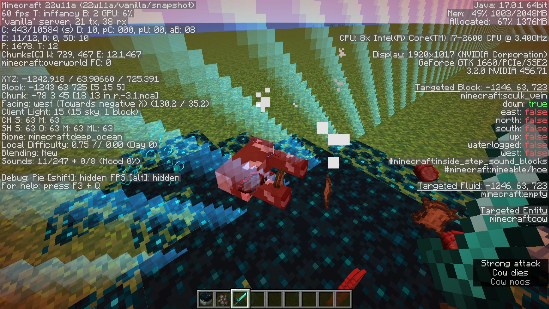 Spawn a cow, and kill it