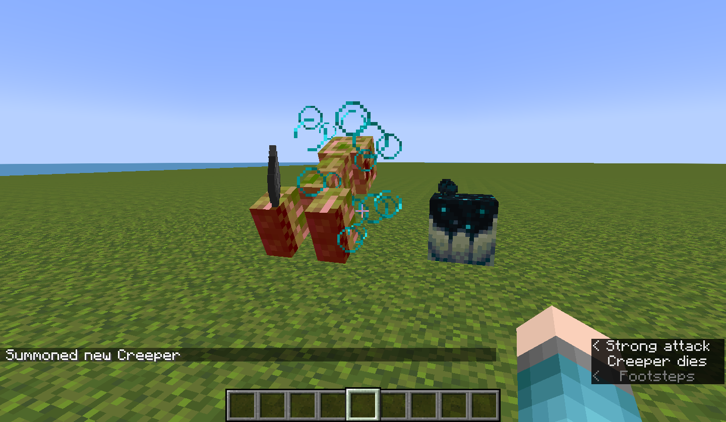 /summon minecraft:creeper ~ ~1 ~ {NoAI:1b,Health:1f}Kill the mob and watch the blocks beneath it closely.