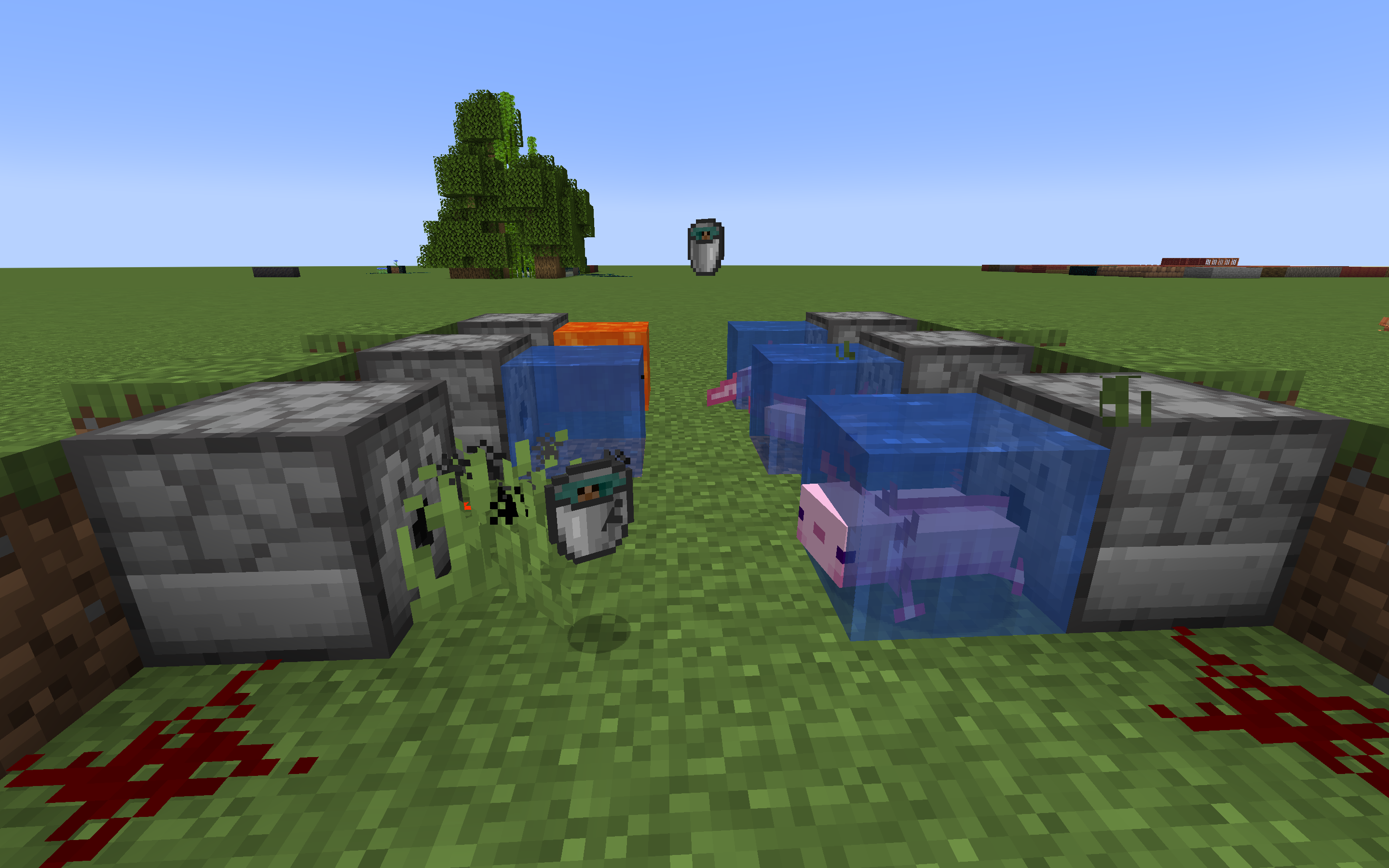 ✔ The axolotl and water replace the block of lavaPlace a Bucket of Tadpole in the dispenser, and activate it