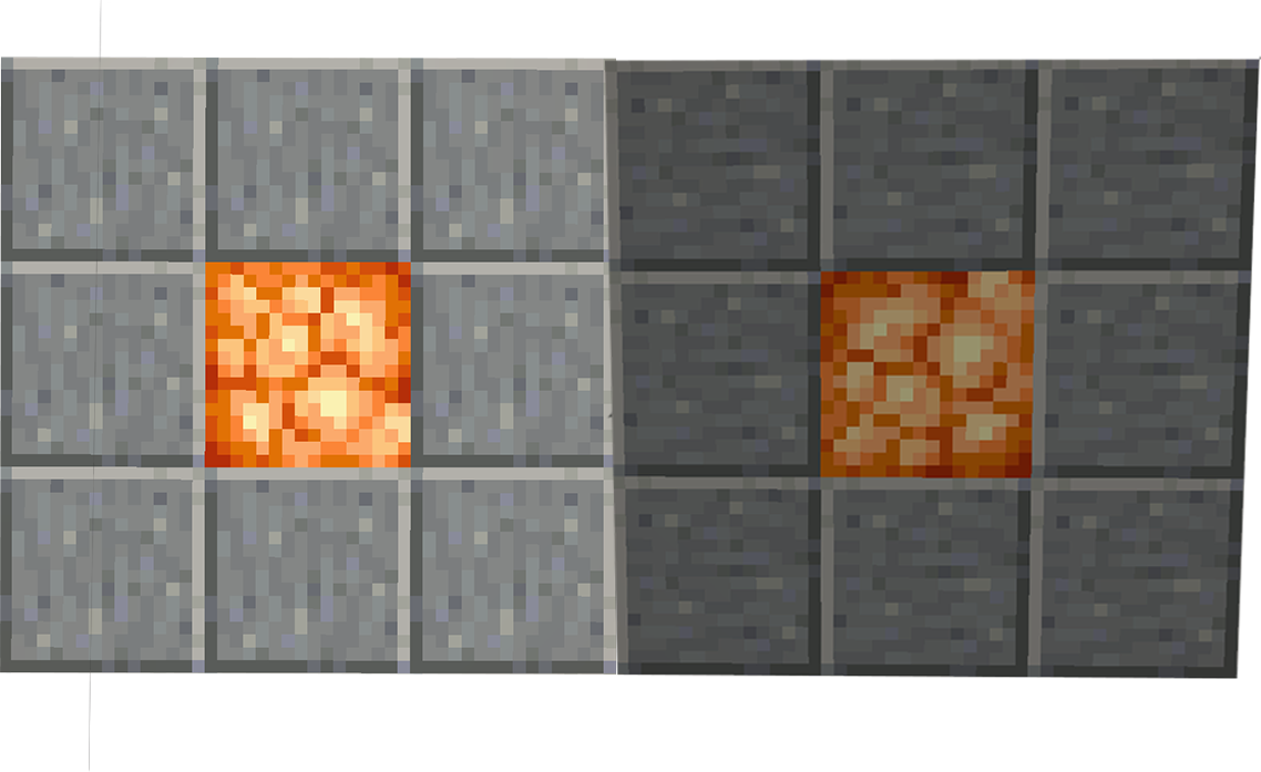 This is easier to see when surrounded by blocks on all sides, the attached example displays the top of the block on the left and the side of the block on the right, both were screenshotted directly from the 1.18.2 latest release.