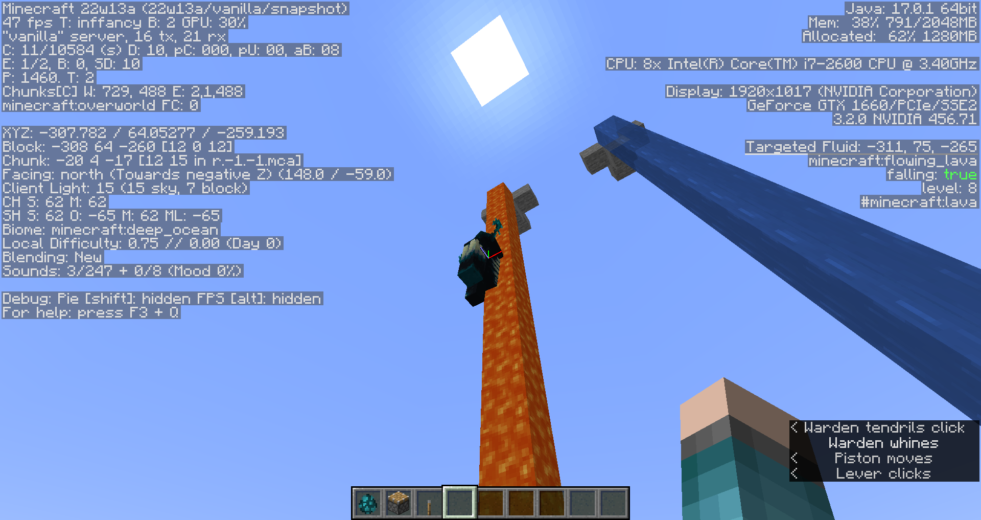 Take note as to whether or not the vertical movement of wardens when they're in liquids is too sensitive.