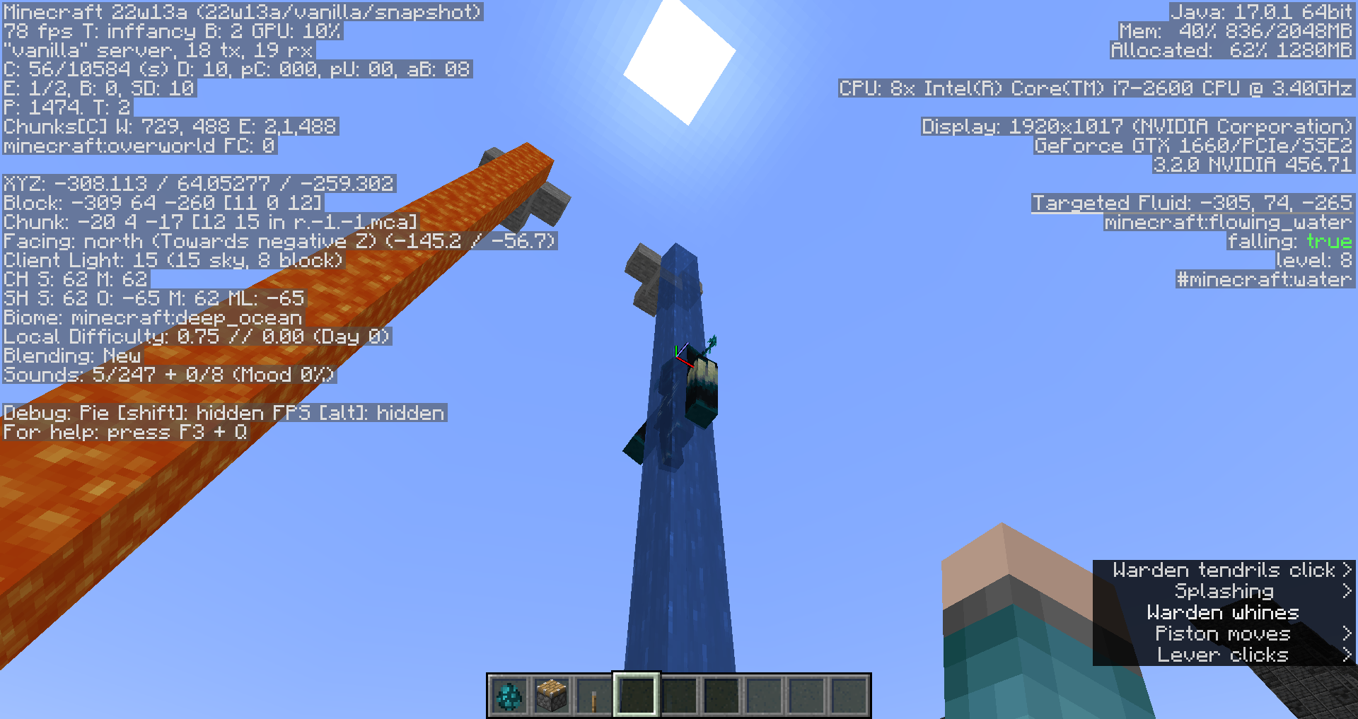 Enter a deep body of water and summon warden.