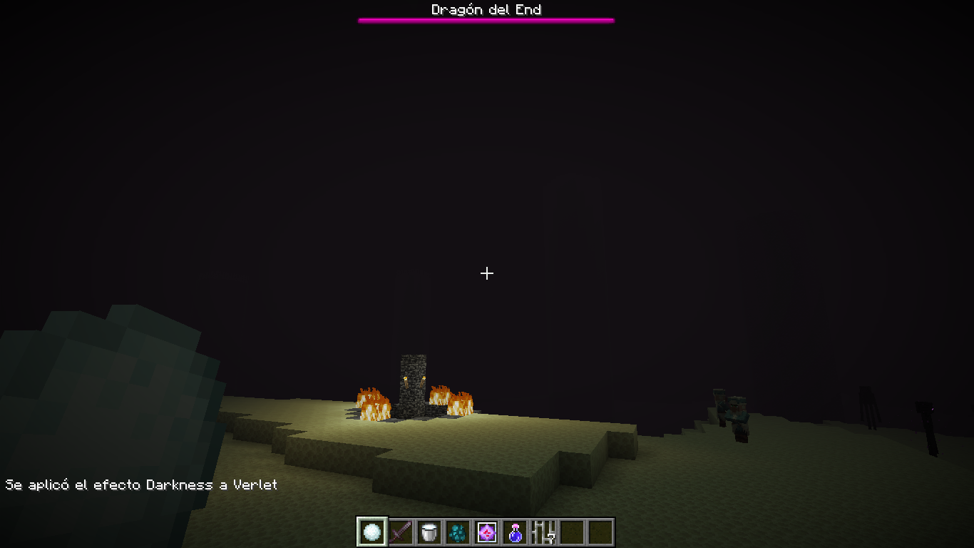 The fog that is generated in the nether and in the end during the fight with the ender dragon and the underwater fog is not displayed correctly when the player has the darkness effect with duration between 1 and 6 seconds. Any duration over 6 seconds will charge the darkness cloud, so the fog cannot be seen. When the effect is over, the fog in these areas will be displayed correctly again.