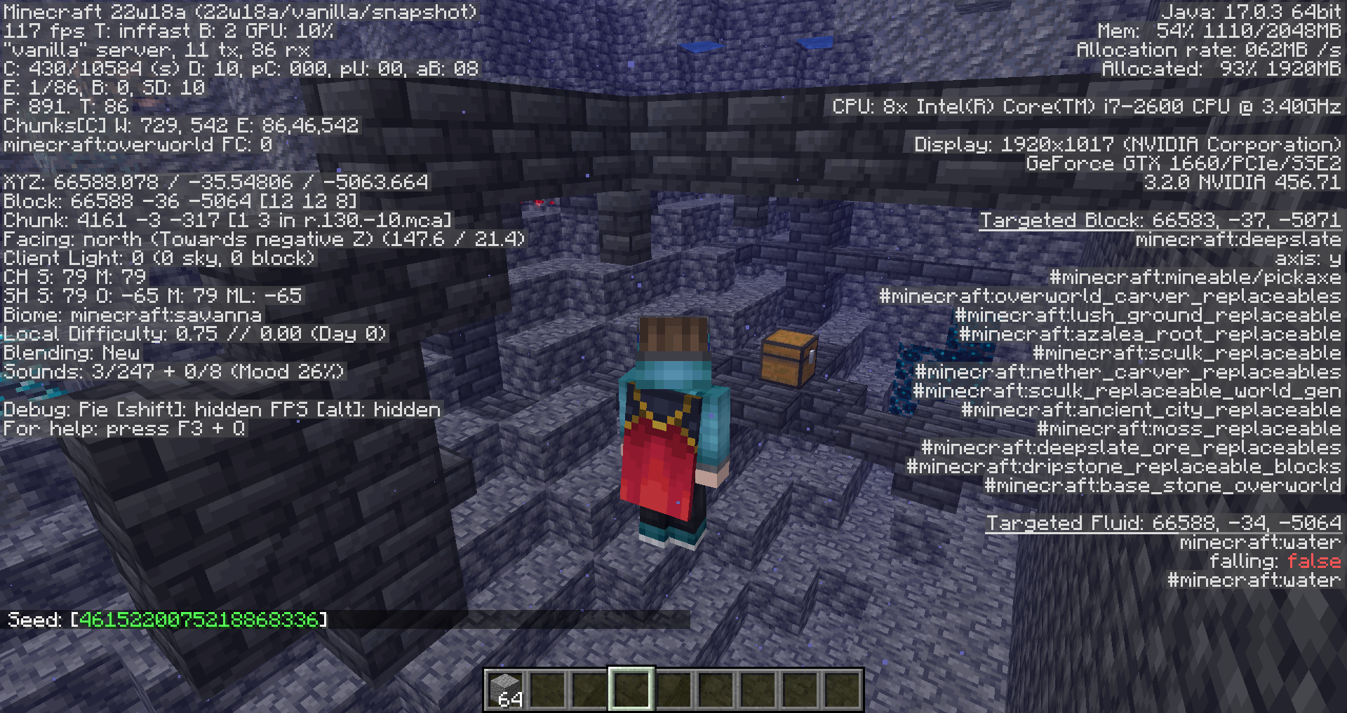 Coordinates: /execute in minecraft:overworld run tp @s 66588.08 -35.55 -5063.79 -1292.38 21.43Can confirm not fixed. Creating a new world with the original seed (-4958260856419505585), I still managed to find ancient cities that were getting submerged in aquifers.