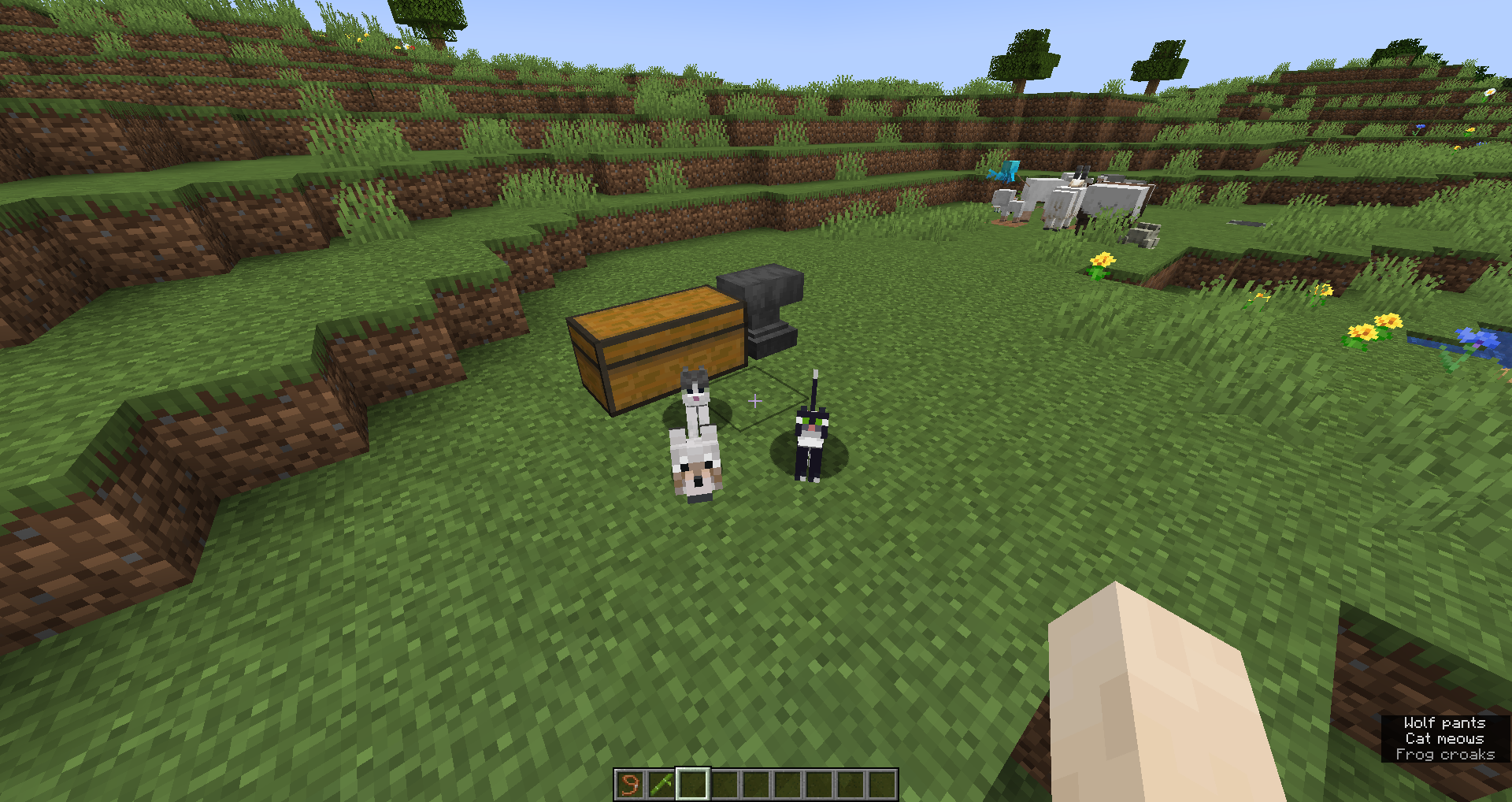 I loaded my 22w12a world, Then I wanted my cats & wolf to follow me to where I wanted them to go, but they were stuck sitting. I had this issue before but I couldn't get a chance to report it simply because I was so fed up with this. I killed my wolf. That's why I'm reporting this now. In one of the labels, I chose "tamed-cat" because there wasn't a sitting version of it in the selection.