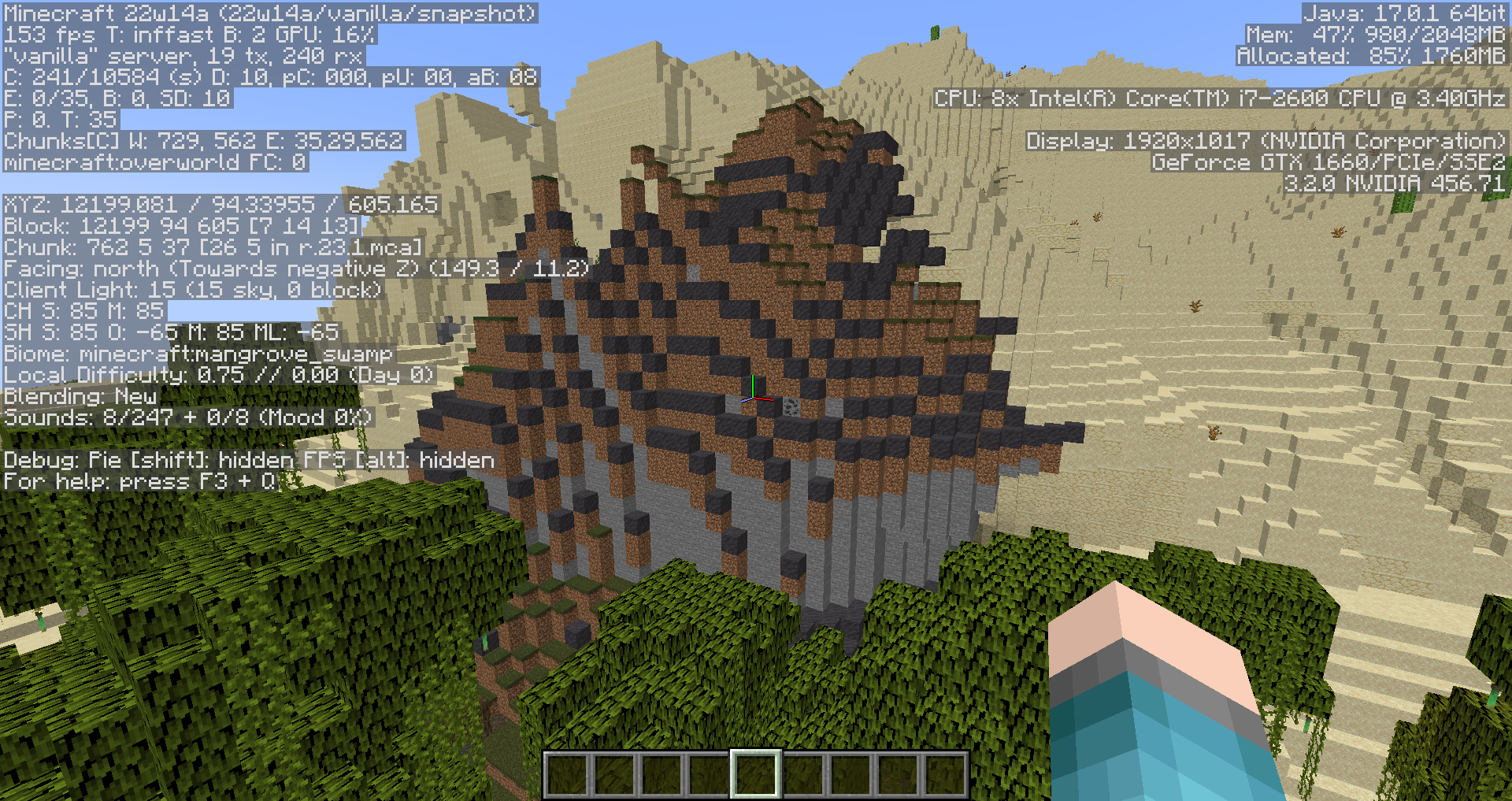 Mud which generates in mangrove swamp biomes is only a single layer thick. This is inconsistent with other biomes such as deserts and badlands, in which the surface block is several blocks thick, makes vertical inclines look ugly due to the exposed dirt standing out, and overall seems very wrong.