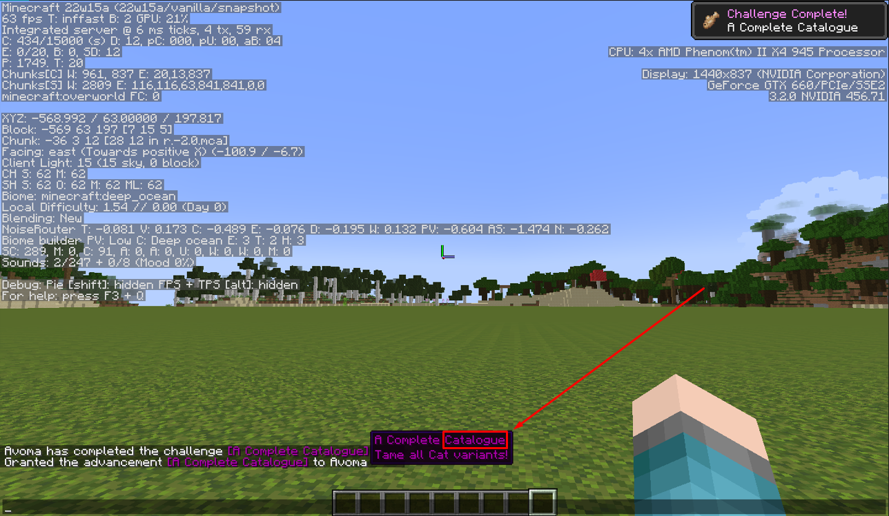 /advancement grant @s only minecraft:husbandry/complete_catalogueLook at how the word "Catalogue" is spelled and take note as to whether or not it's spelled in American English.