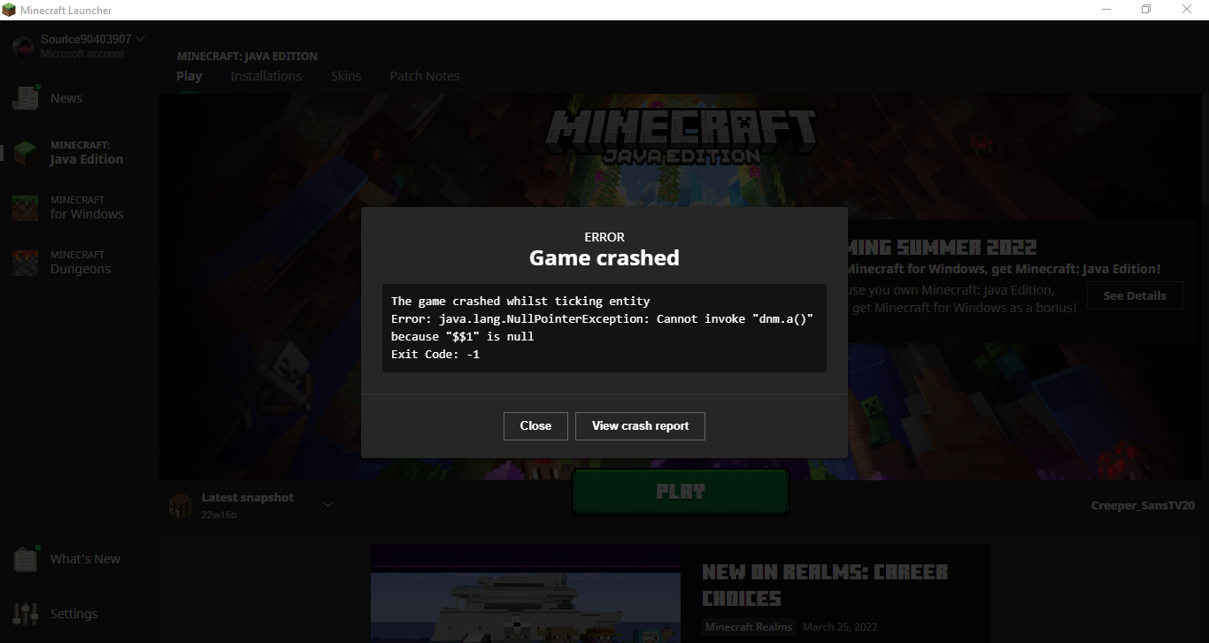 Game crashes while ticking "entity" in any newly created World in the latest snapshot