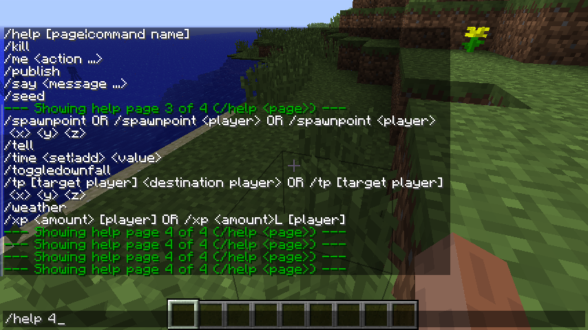 Typing /help with cheats enabled says there are 4 help pages. However, page 4 is blank.
