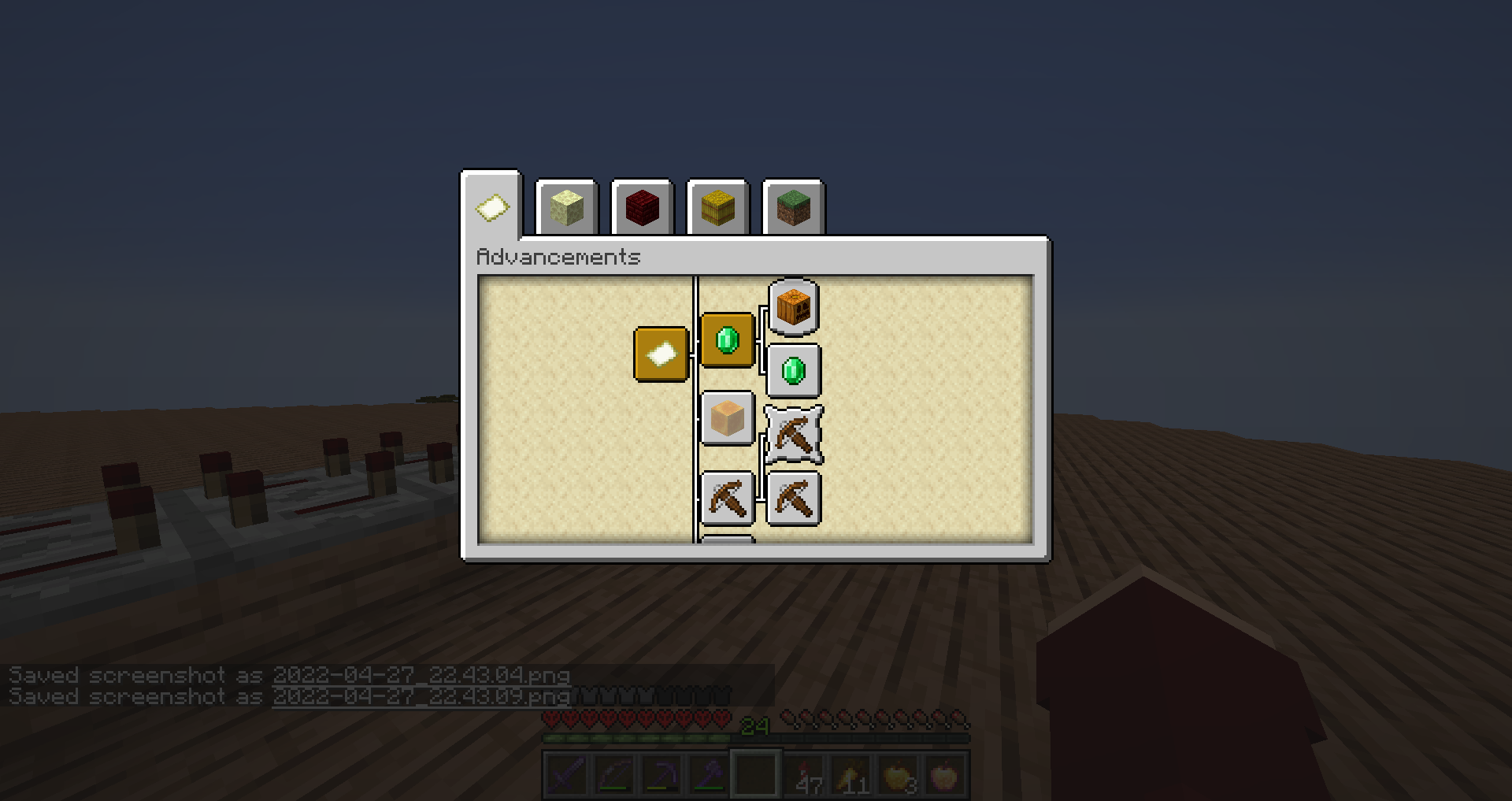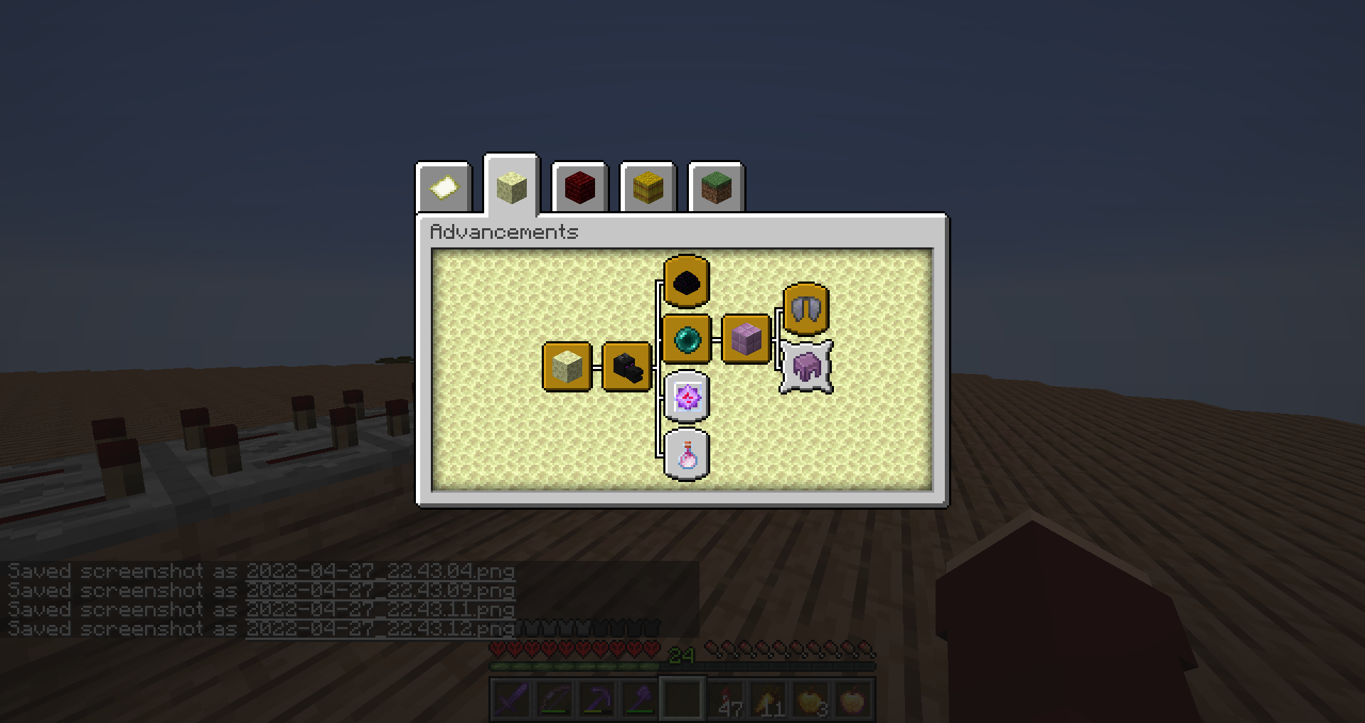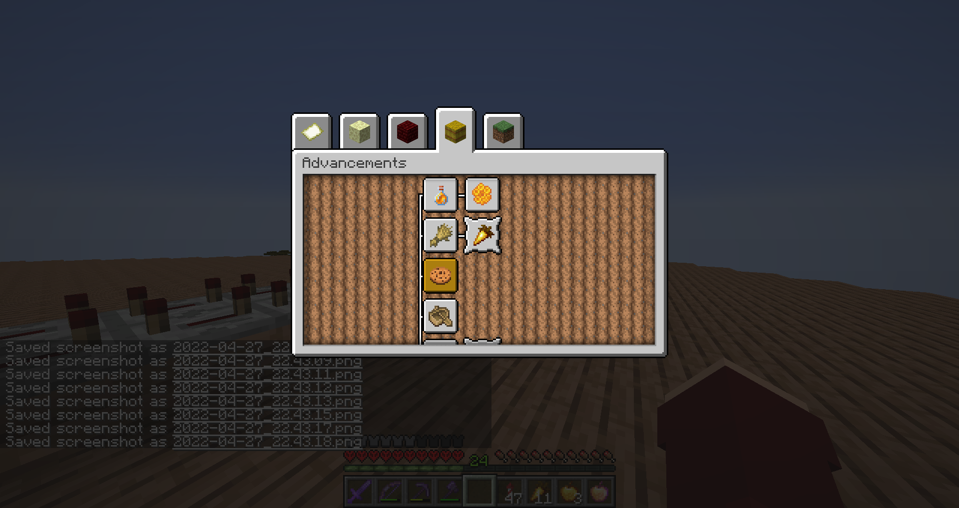 I upgraded my hardcore world from version 22w16b to 22w17a (because the last snapshot is unplayable) and I decided to check which advancements I have to do in my world