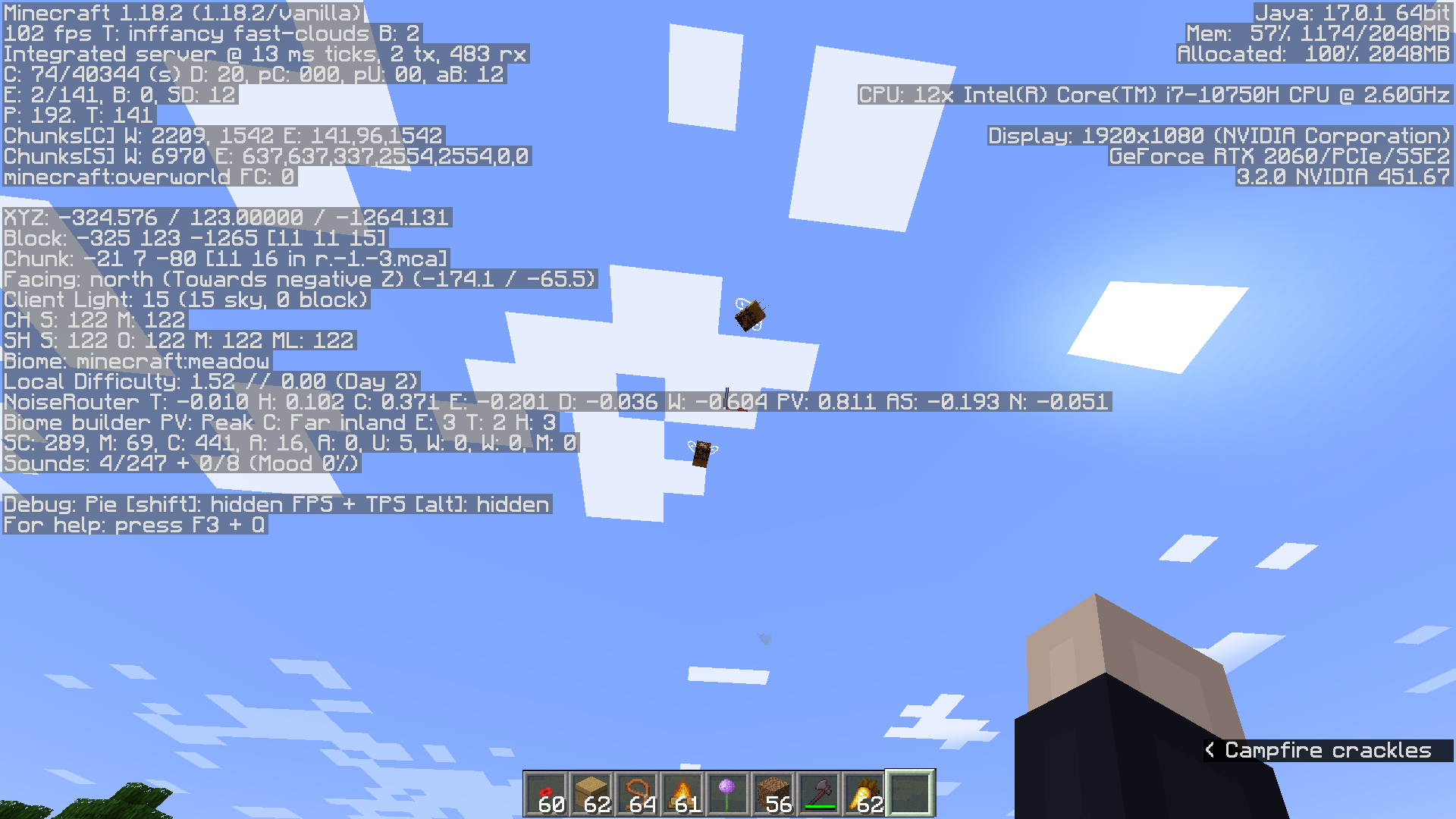 When approaching the stuck bee (and the wandering bee) with a flower, it will become un-stuck, but still will not enter the hive and continues to wander. However, it appears one of the bees get stuck again after a few minutes (I'm not sure if it is the same bee getting stuck or a different one... my bad for not paying close enough attention)... Again, about 12 blocks in the air, but in a different spot (x,z).