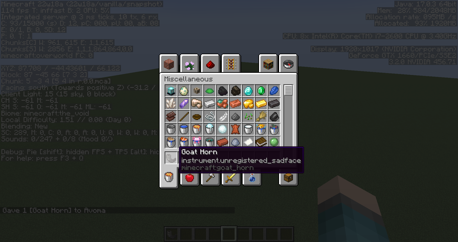 "instrument.unregistered_sadface" is untranslated and displays as its raw string instead.