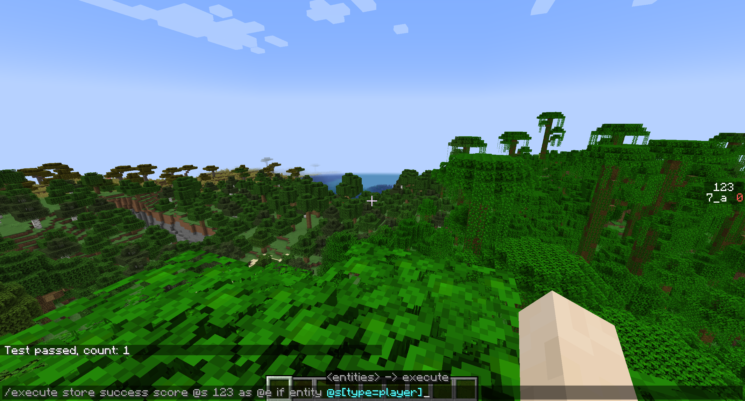 2./execute store success score @s 123 as @e if entity @s[type=player]