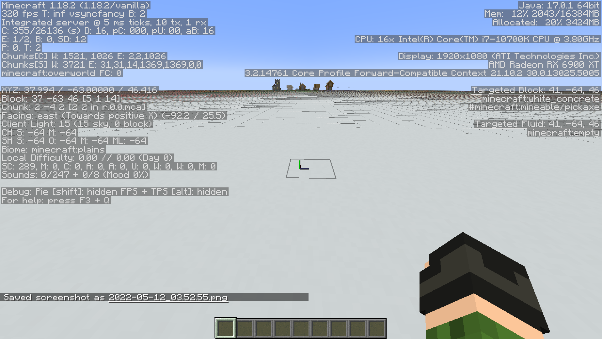 outlines on all blocks 6 blocks away from character, screenshots are on a single player super flat with white concrete but it still happens in normal worlds along with multiplayer, i included a pic with optifine installed and it goes away