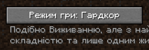 During the creation of the world, when choosing the game mode Hardcore, it is written "Гардкор" but should "Хардкор".