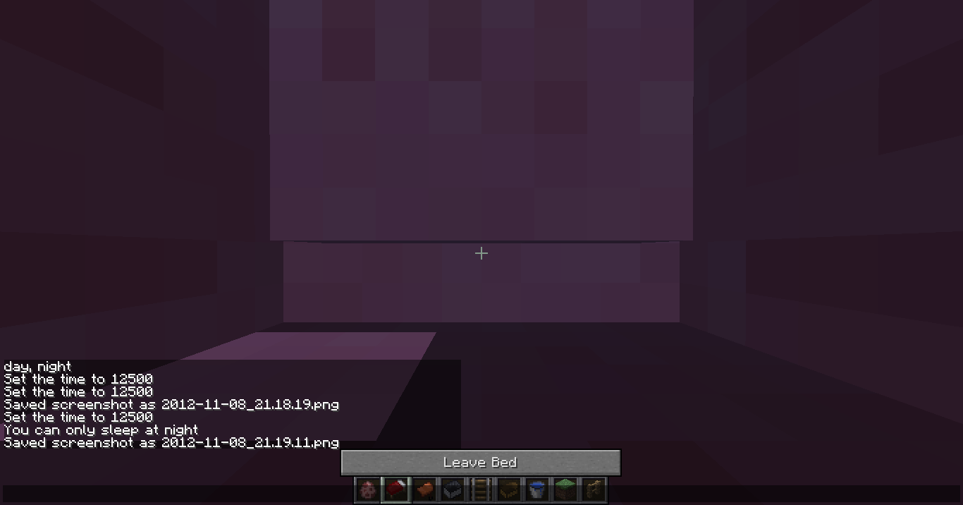 While riding a pig / minecart / boat and then attempting to sleep in a bed, you recieve a strange image of you in the bed and the pig / minecart.