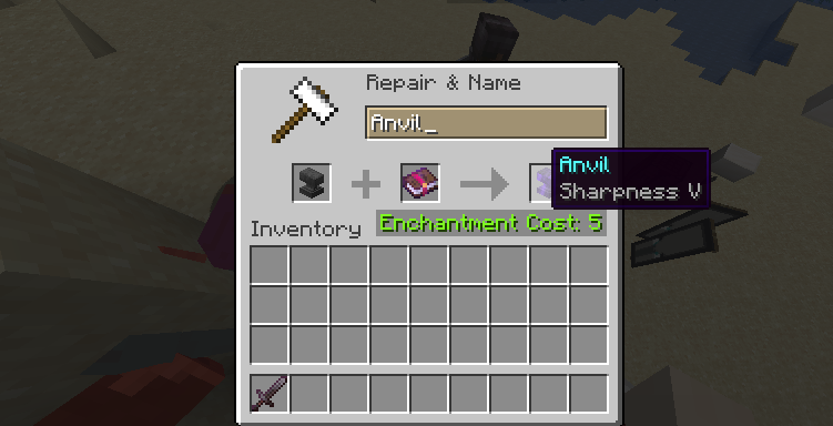 As seen in the screenshot I enchanted an anvil with sharpness V. This also works with any other block, food item etc..