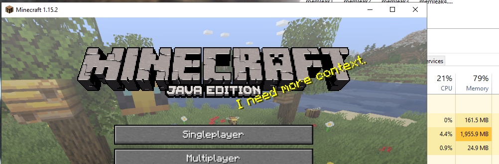 and I know the hardware I play minecraft on isn't particularly good but the game has run fine as long has I had a mod like optifine installed the game ran fine and 1.15 to 1.17 ran fine without mods due to all the bug fixing and optimizations in 1.15, but this memory leak causes the game to run at ~10fps even with mods like sodium and lithium (all tested versions were unmodified vanilla MC)