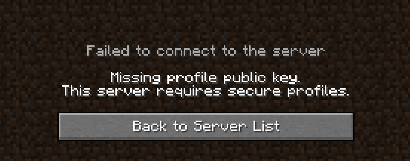 Joining a server sends an error saying "missing profile public key This server requires secure profile"