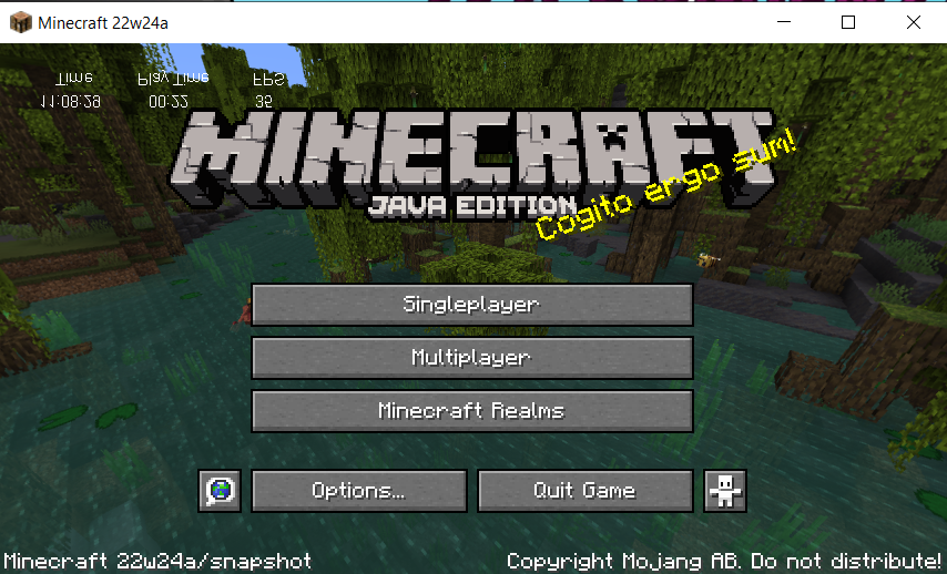 Very simple, I downloaded the new snapshot to test the new features, but as soon as Minecraft opened, I noticed information about the game, the strange thing is that it is completely turned upside down, I took a picture of it and turned it over to know what it said and put the FPS, Game time and real life time, for some reason I have closed and reopened the game and it no longer appears, I don't know why.
