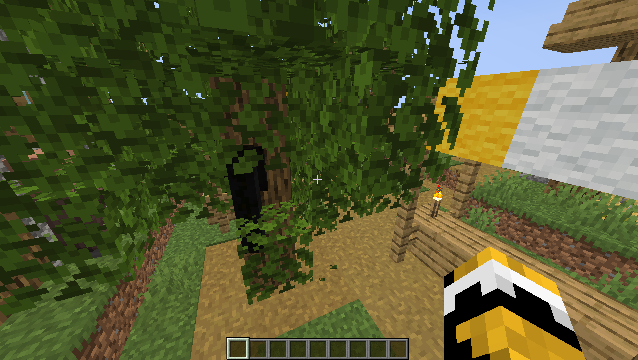 Iron golems and cats that spawn within villages can spawn inside of trees.
