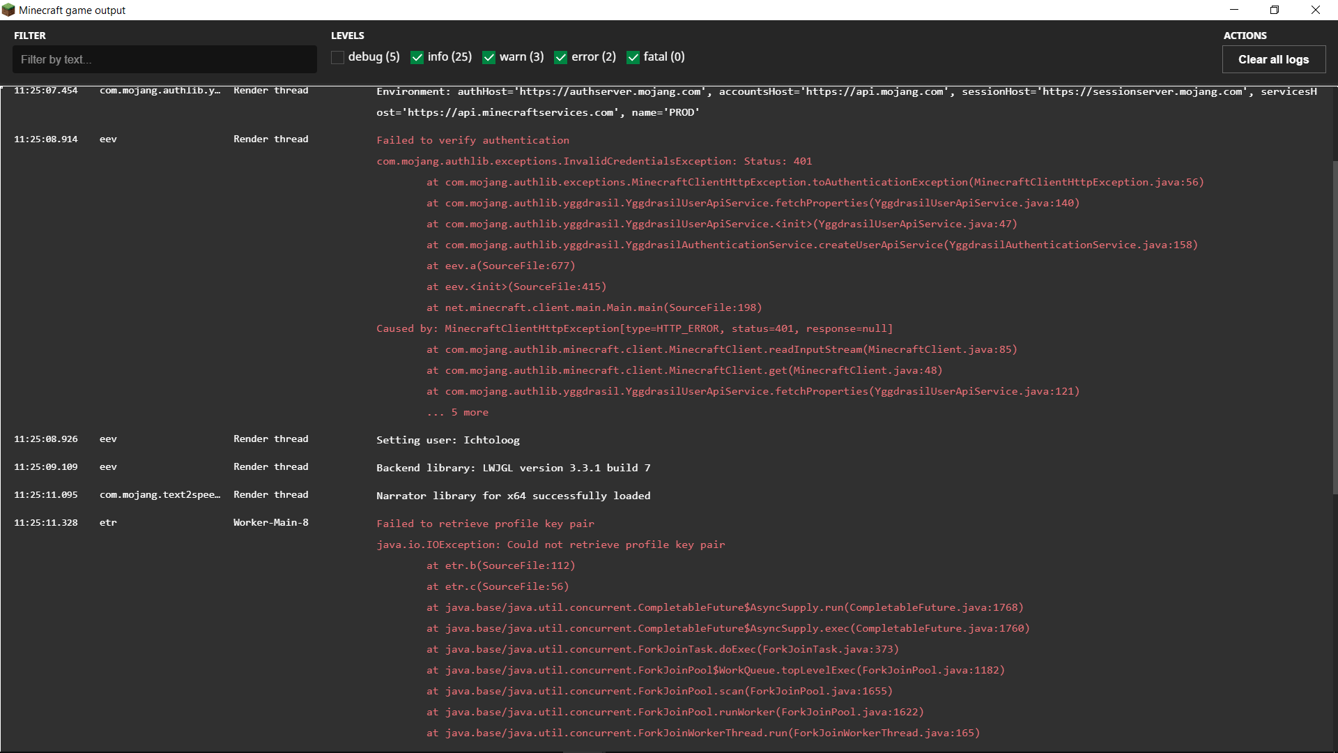 com.mojang.authlib.exceptions.InvalidCredentialsException: Status: 401