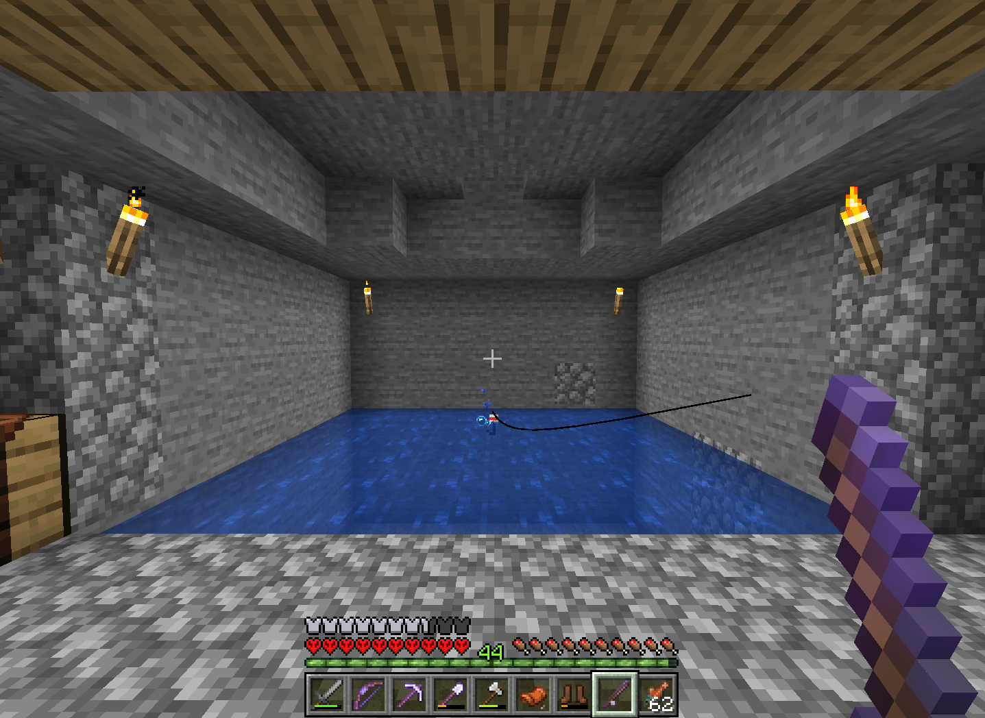 The fishing line will be rendered offset to the left of the fishing rod when playing with an aspect ratio with a lower width (such as 4:3) and to the right of the fishing rod when playing with an aspect ratio with a higher width (such as 21:9). The offset direction will be reversed when the fishing rod is held in the left hand.