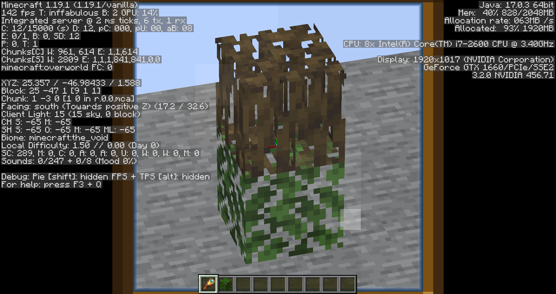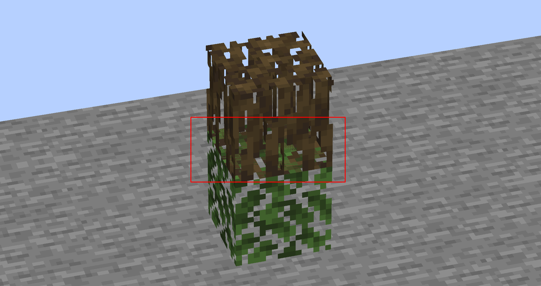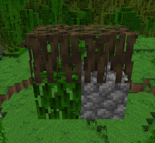 Mangrove roots experience z-fighting with leaf blocks when the player is viewing them from below a certain angle.