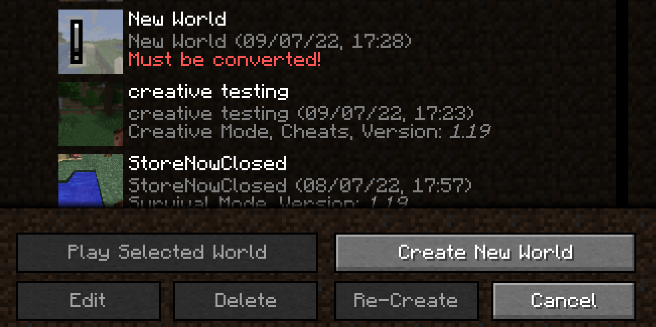 When being in the singleplayer menu, you are not able to select and delete worlds that are older than release 1.2.1