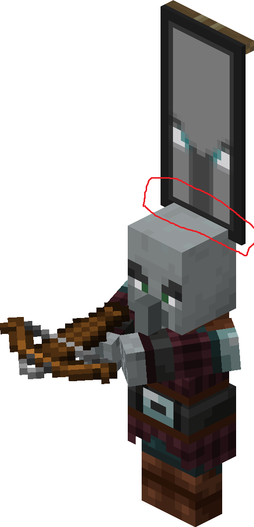 In Minecraft Bedrock edition and Minecraft Dungeons, the ominous banners equip on raid captains’ chestplate slot. In Java editions, the ominous banners equip on raid captains’ helmet slot, and the banner pole is too short.