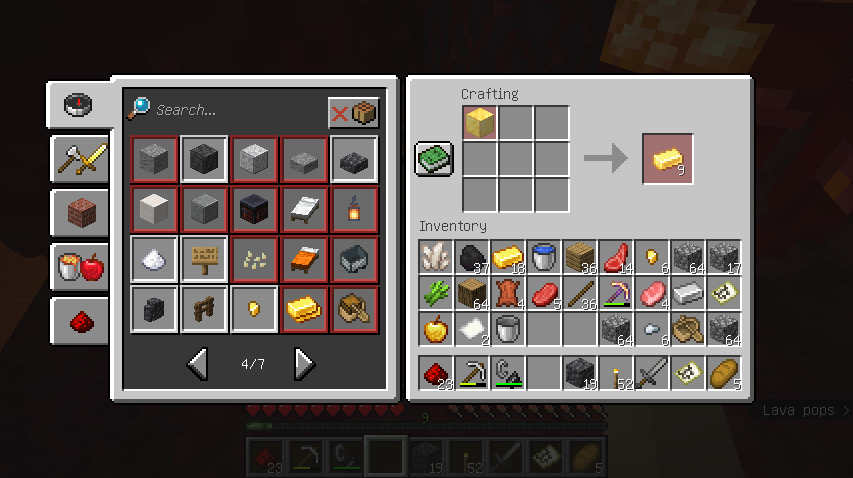 The crafting recipe for gold ingots (which involves a block of gold) appears before I have obtained any of them.