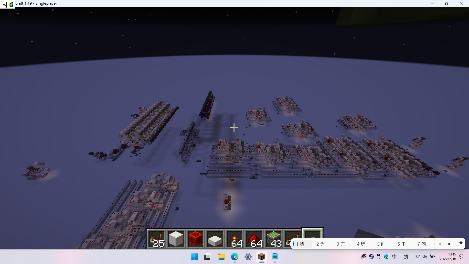 Open Minecraft Java Edition, and enter a world. Make sure that these Chinese character mentioned are still show on your screen before testing. Try moving character by pressing a key like "W", and you will find that this bug occured.