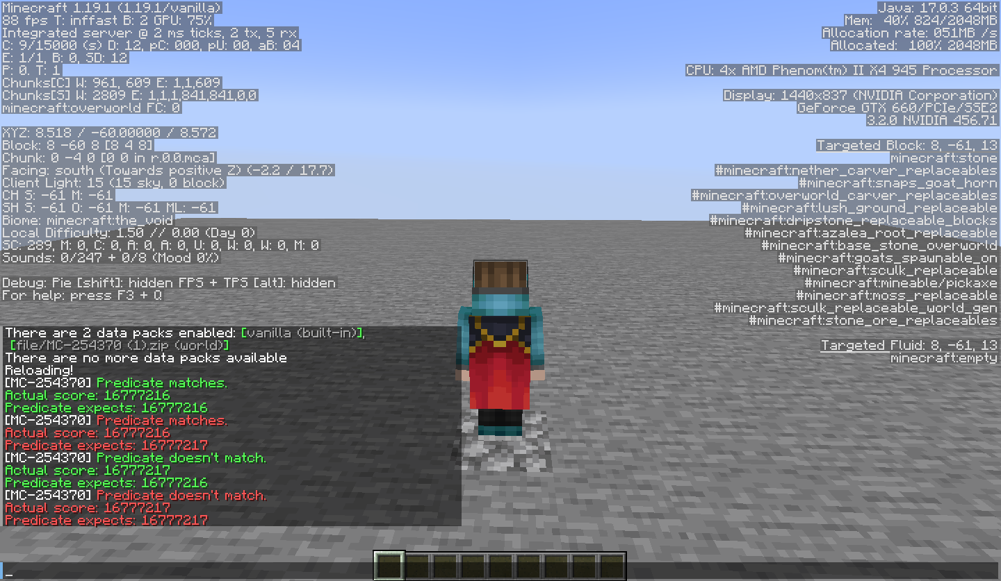/scoreboard objectives add _ dummy/scoreboard players set @s _ 16777217/execute unless predicate _→ ❌