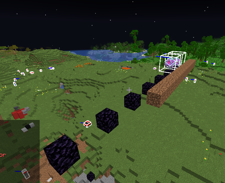 place a line of 7 obsidian blocks at the same height roughly three blocks apart