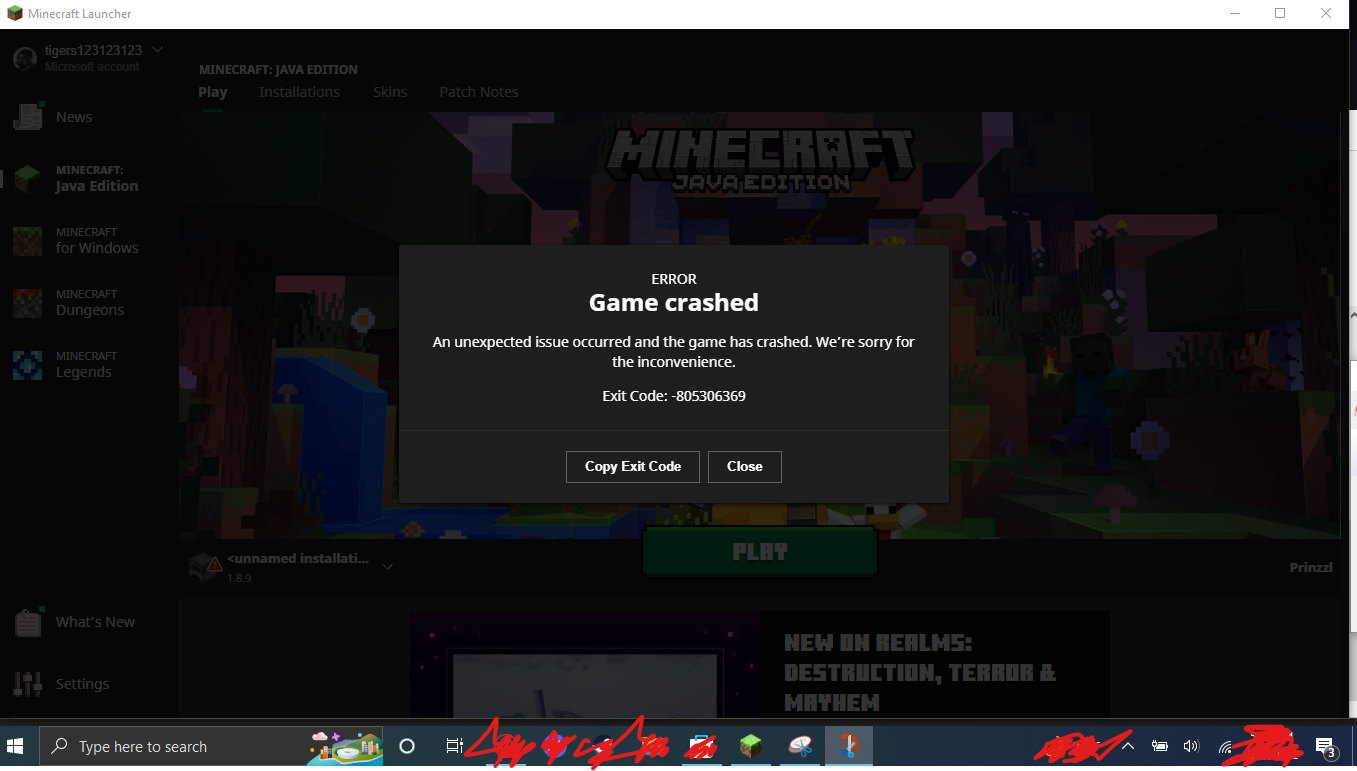 what does exit code -805306369 mean I press play and it says not responding and I close out of it and it brings me to the launcher and say exit code -805306369 if you could fix it that would be nice. Also, sometimes I can't open the Minecraft launcher unless I reset it or uninstall it.
