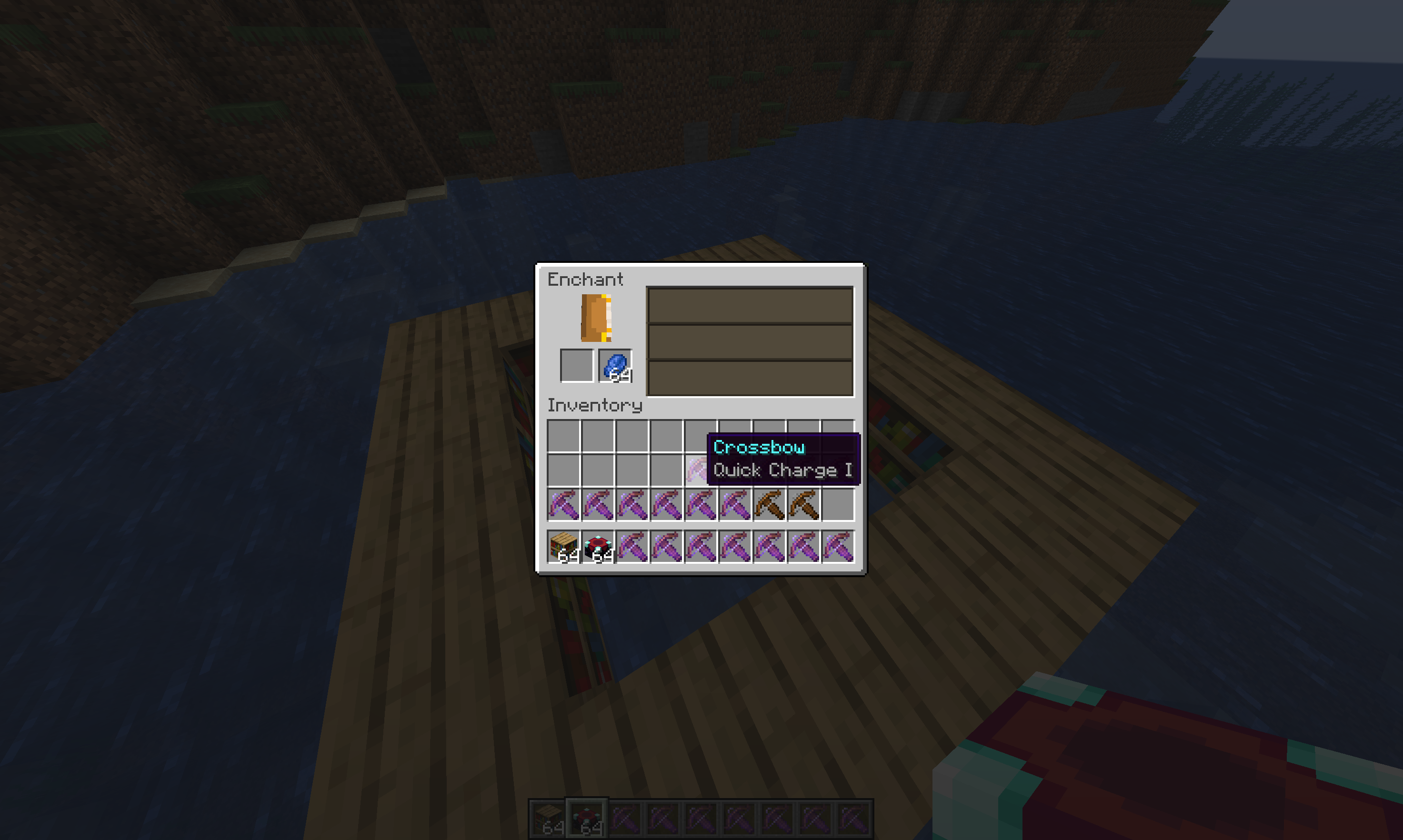 3. put the crossbow into the enchantment table