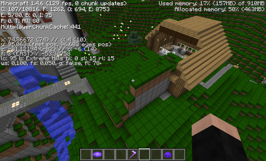 2013-05-27_11.58.55 & 2013-05-27_11.59.03 Show a recreation of the seed with no "built" items in it, created in online mode.