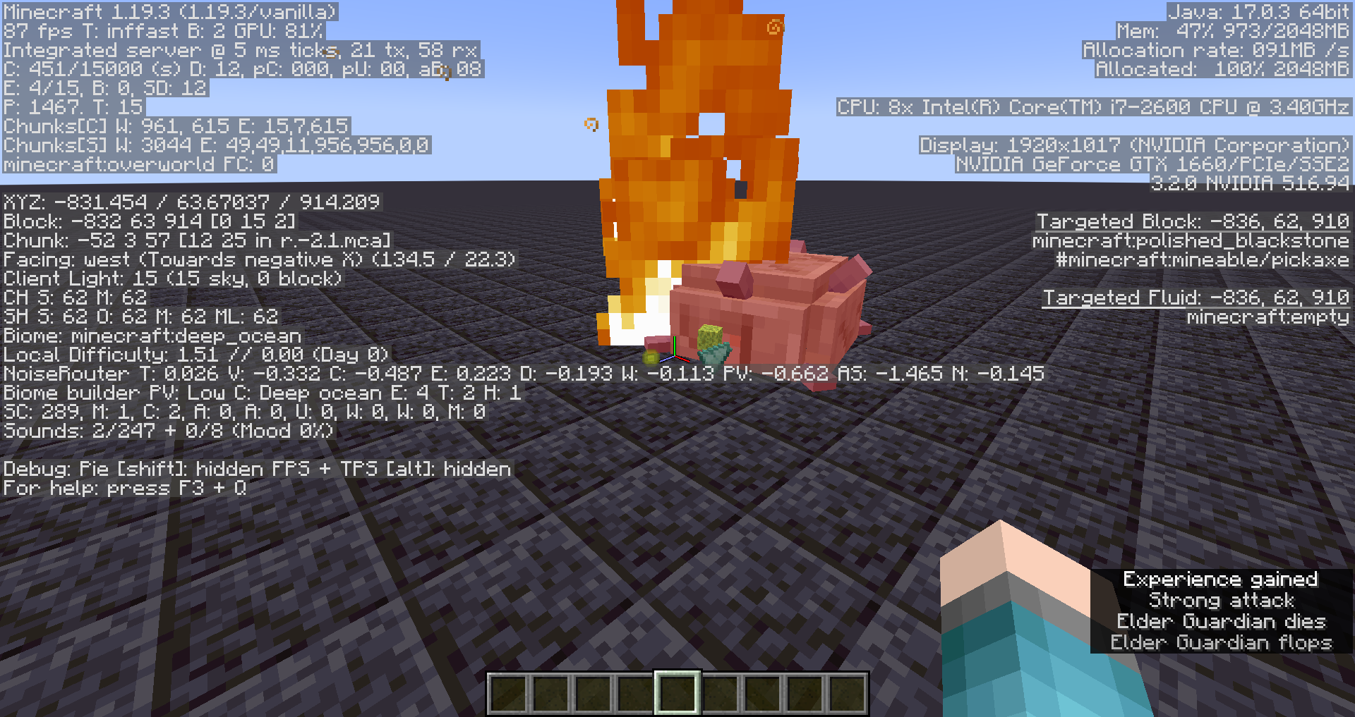 Summon a fire-resistant elder guardian that's on fire by using the command provided below.