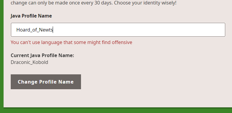 I expected to be able to change my name to Hoard_Of_Newts