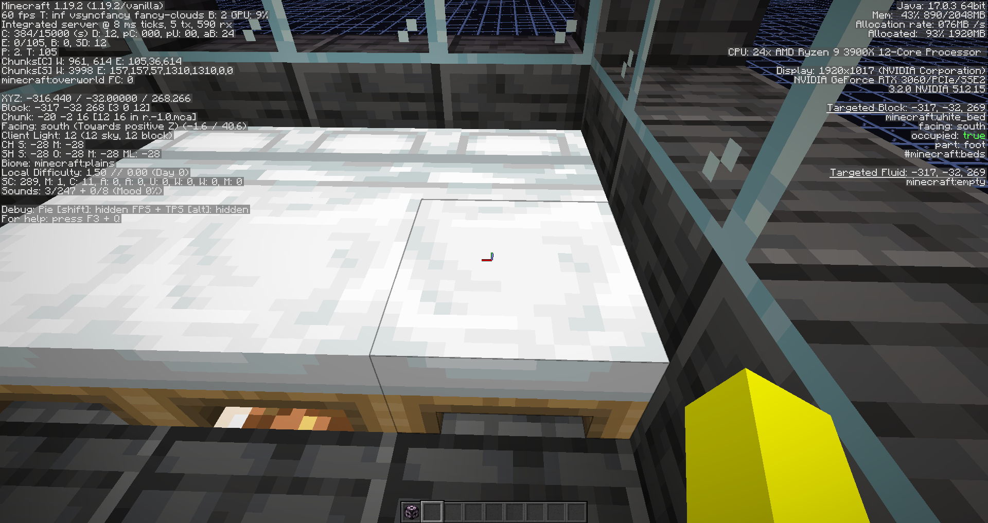 Please look at the bed, press F3 to enable the debug menu and make a screenshot. Attach said screenshot here.