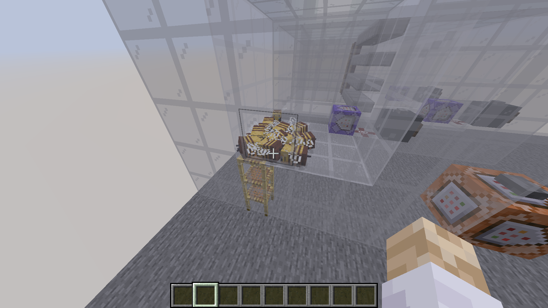 All Bees try to pathfind through the top surface of scaffolding but cant get through and get stuck.
