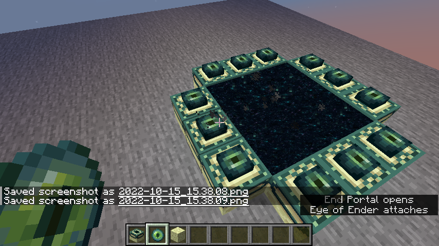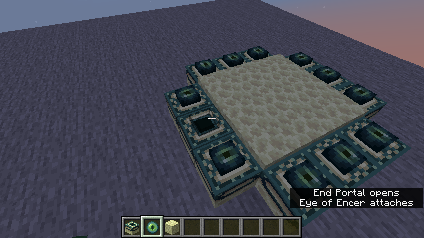 When an end portal is activated, any blocks that exist within the portal frame will be deleted to make room for the portal blocks. This block deletion will not result in any of the blocks making sounds or generating particles to accommodate this breaking, which is inconsistent with most other block breaking events since 1.13.