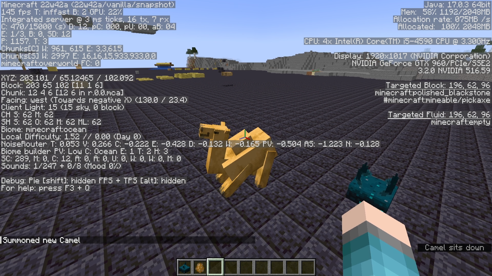 Summon a camel that cannot move by using the command provided below.