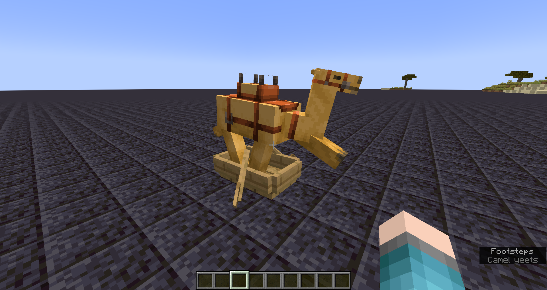 /summon minecraft:boat ~ ~ ~ {Passengers:[{id:"minecraft:camel",SaddleItem:{id:"minecraft:saddle",Count:1b}}]}and entering dash makes the camel permanently stuck in dash, It does get resolved by reopening the world.