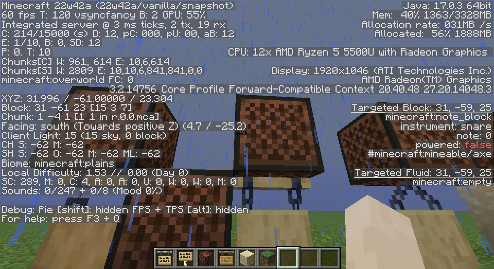 Step 3: Press F3, then point to the noteblock, next check the instrument block state of that noteblock.
