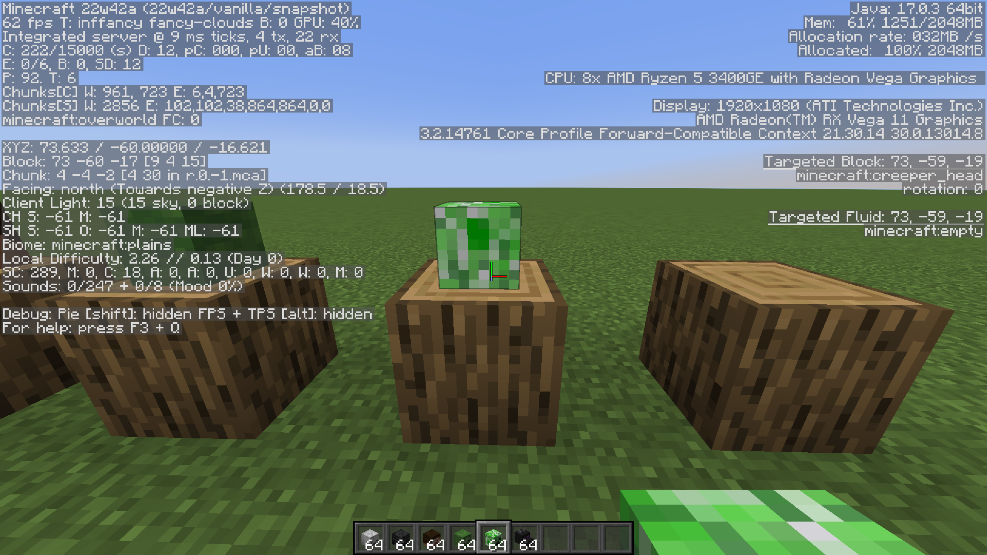 Normally, when you place a mob head on top of a block, it should be facing you but in the case of 22w42a, mob heads face the opposite way when placed.