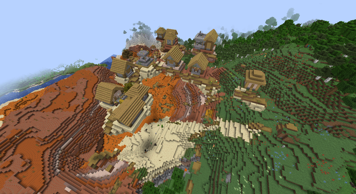 The village was generated according to new generation system where there is a hill in new versions, despite that in old versions there is a lowland